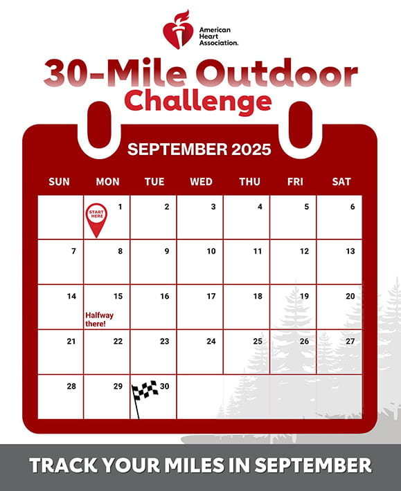 Are you ready to take on a fun physical challenge and raise funds for a great cause? Together, we’ll work to fight against our nation's No. 1 killer — heart disease by taking on 30 outdoor miles your way this September