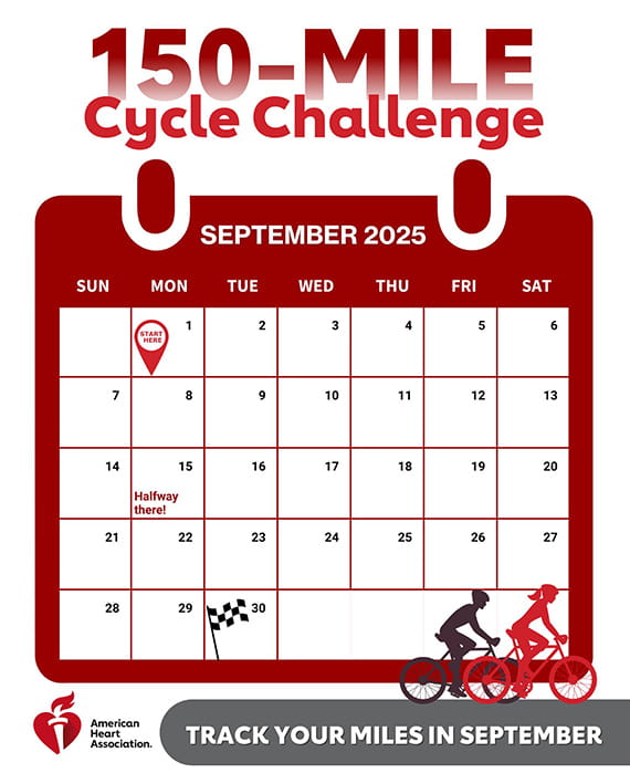 Every 40 seconds, someone has a heart attack. Together, we’ll work to fight against our nation's No. 1 killer — heart disease by cycling 150 miles this September. It's the perfect way to get active while giving back!